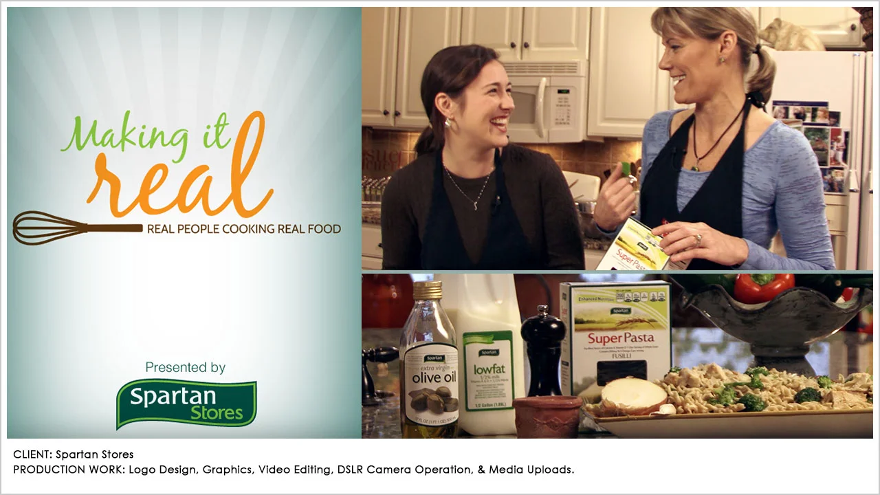 Making It Real was developed as an online video program and a live social event featuring various food vendors from Spartan Stores. Evolving Creativity LLC role in production was to develop the logo, graphics, and edit the video program into a 4-8 min program.