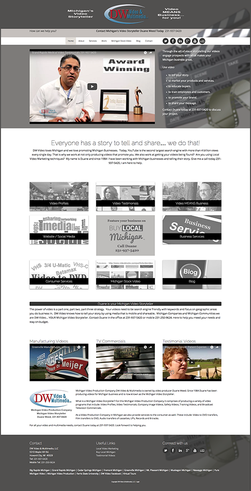We provided the expertise to move his blog posts and uploads to a fresh install of WordPress with the responsive video theme installed. We also provided additional CSS code for the Google Maps embed code to behave responsively, created custom social media icons, setup his Google Analytics, and provided some design tips and suggestions for the website. Using the Nexus Theme, Duane was able to edit 99% of the content himself without much help from us. This kept the budget affordable and low due to less involvement with us in editing/creating/writing content.
