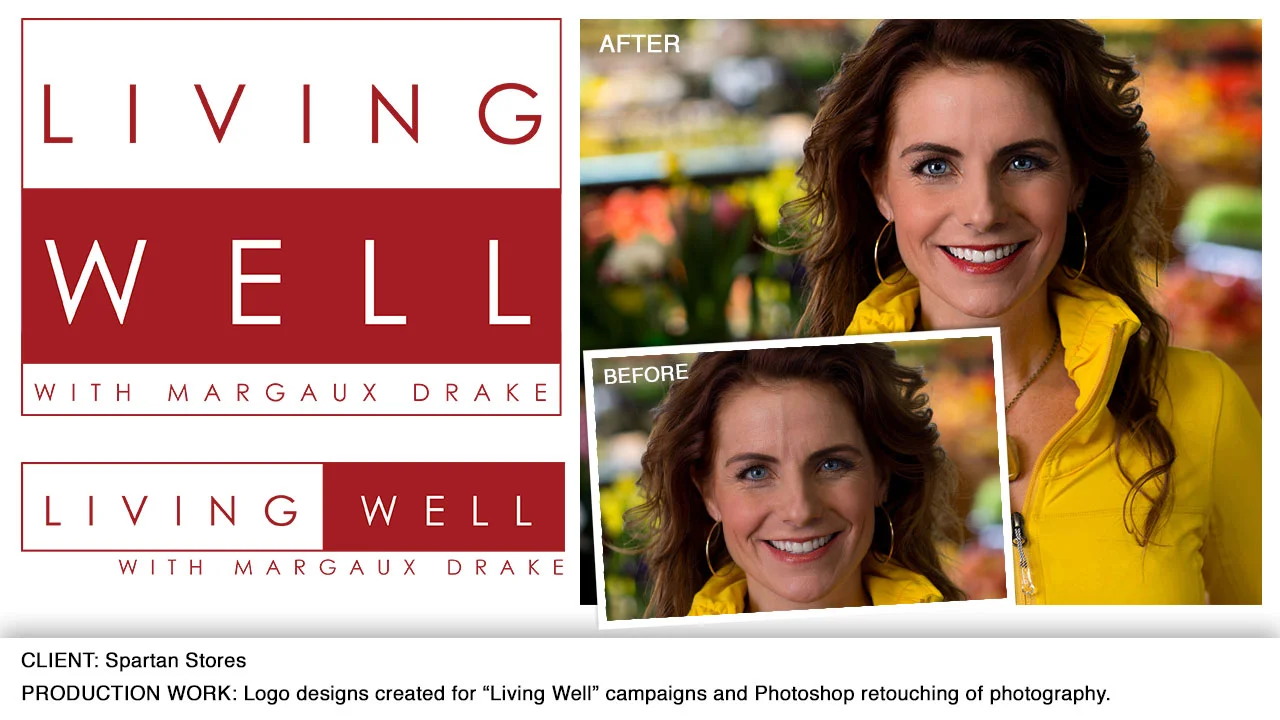 The photos were provided by Spartan Stores from a 3rd party agency or photographer. Margaux requested that the photos be retouched before using in advertising campaigns. Evolving Creativity informed Spartan Stores we could make those beauty adjustments. These photos showcase our abilities for post-production photography work. The original photographer is unknown.